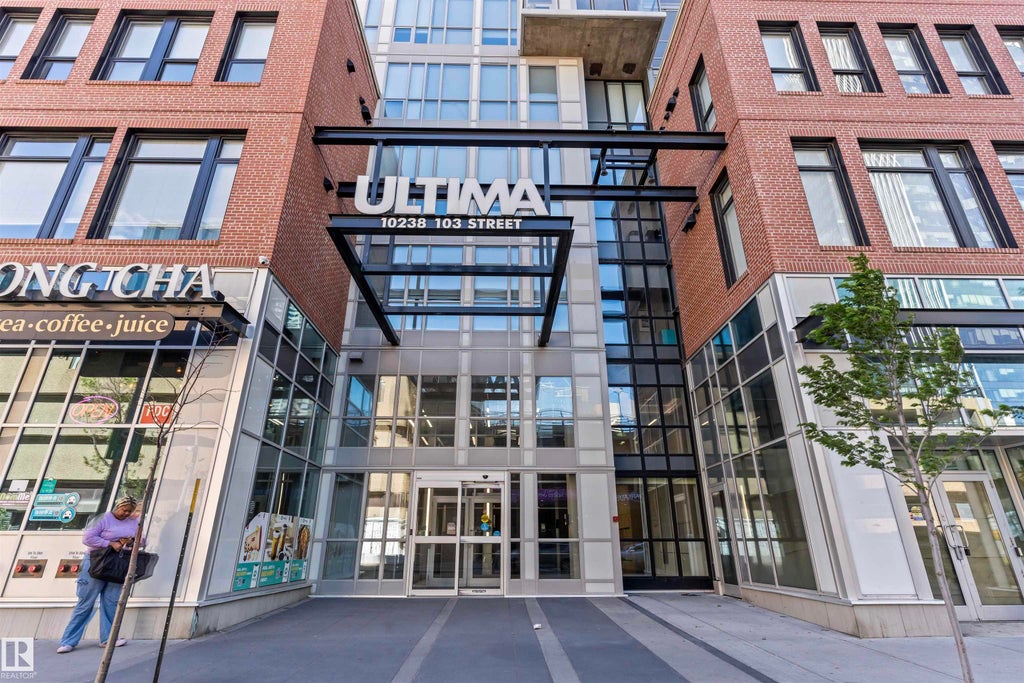 Pristine corner unit with a stunning bright view apartment, boasting large, sunlit windows. This 2 bedroom, 2.5 bathroom gem features southwest exposure, abundant natural light, and floor-to-ceiling windows. The modern finishes and spacious layout just shy of 1000 sq. ft. offer comfort and style. Enjoy a large balcony, underground heated parking with a storage cage, all in an unbeatable downtown location. The two primary bedrooms each have ensuite bathrooms, plus there's an extra half bath, perfect for entertaining—an uncommon feature at this price! The expansive kitchen includes mocha brown cabinets, stainless steel appliances, granite countertops, and a large island with seating. In-suite laundry, luxurious wood flooring in main areas, upgraded tile in the 2.5 baths, and plush carpeting in the bedrooms enhance the living experience. Ultima Tower provides excellent amenities like a gym, showers, hot tub, BBQs, a party lounge, three elevators, and 24/7 security/concierge.