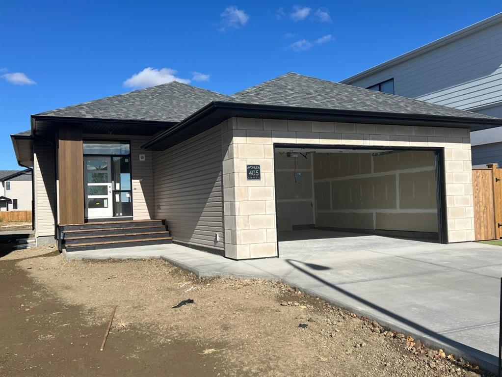 BUNGALOW LIVING RIGHT ACROSS THE STREET FROM LEGACY PARK. The Bennett is a beautiful 2 bedroom, 2 bathroom bungalow combining modern elegance with thoughtful design. the striking exterior features dark brown faux wood, metal accent siding, sleek black windows, a matching black garage door, and stylish beige stone accents that boast curb appeal. Inside you will find warm , contemporary finishes including Beige painted MDF cabinetry, blond wood textured melamine, and stainless steel Kitchen appliances that perfectly compliment the upgraded white quartz countertops with subtle grey veining in both the kitchen and ensuite. Custom touches like a built in bench in the entryway and a cabinet hood fan add both style and function. The ensuite showcases, glossy white textured shower wall tiles, while matte black designer light fixtures provide a bold modern contrast throughout. cozy up by the 60" Electric fireplace with a beige textured tile surrounding.The basement is undeveloped but set up for large family room, 2 more bedrooms and another full bathroom. You will love the laundry/ Mudroom located just off your 22' x 24' garage. Perfectly situated right across from Legacy Park, with convenient access to all essentials and just a quick 5 minute drive to a nearby dog park. Bungalow living across from a park doesn't come along very often. NHW